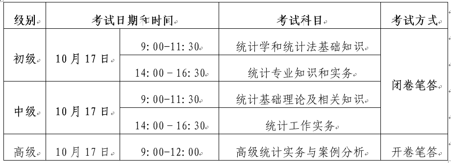 2021年度统计专业技术资格考试具体考试时间及科目如下: